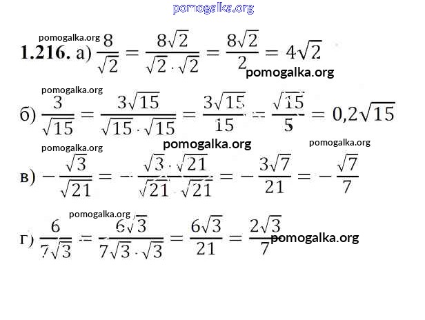 Готовые ответы - Алгебра 8 класс Арефьева И.Г. - упражнение глава 1 1.216