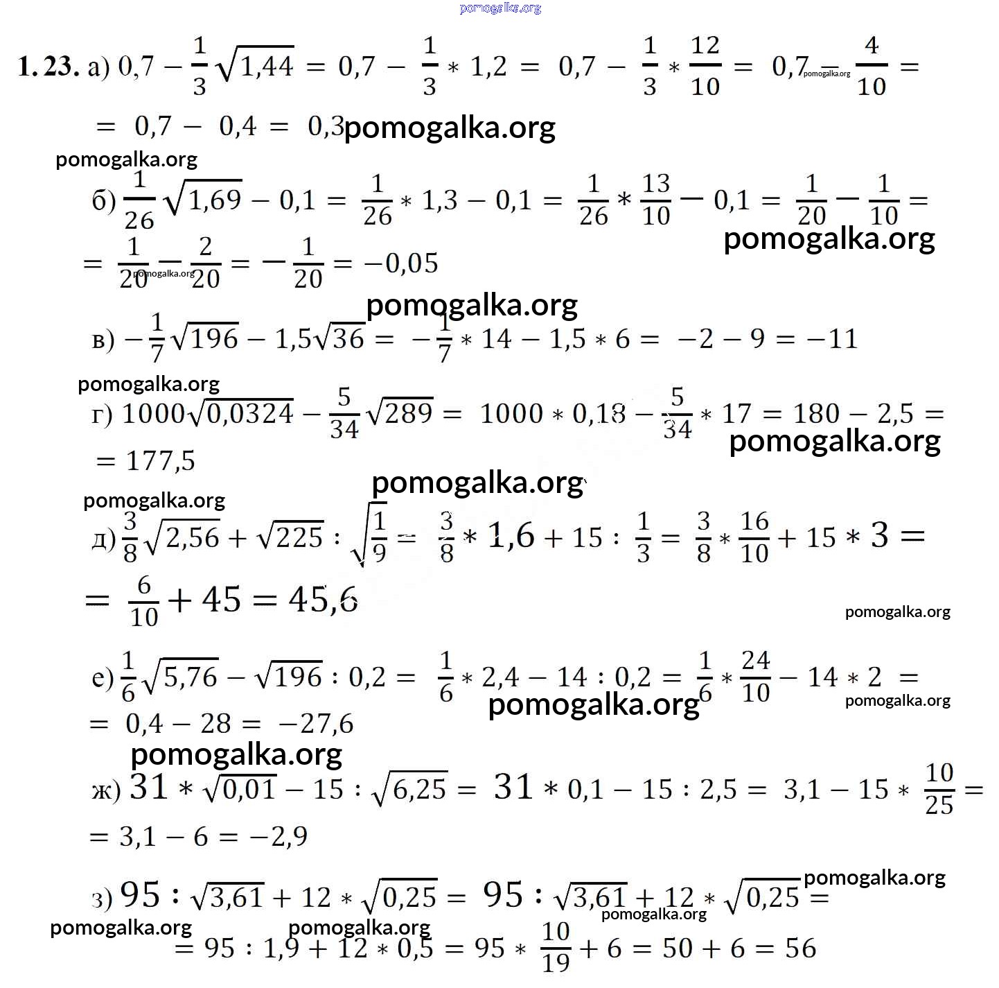 Готовые ответы - Алгебра 8 класс Арефьева И.Г. - упражнение глава 1 1.23