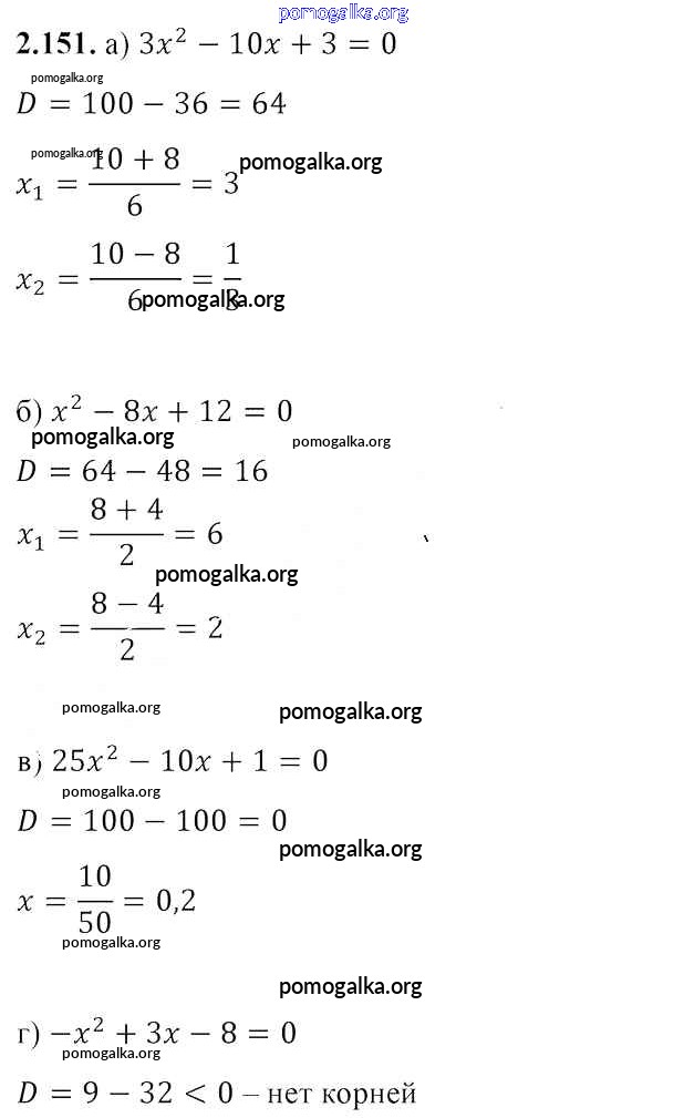 Готовые ответы - Алгебра 8 класс Арефьева И.Г. - упражнение глава 2 2.151