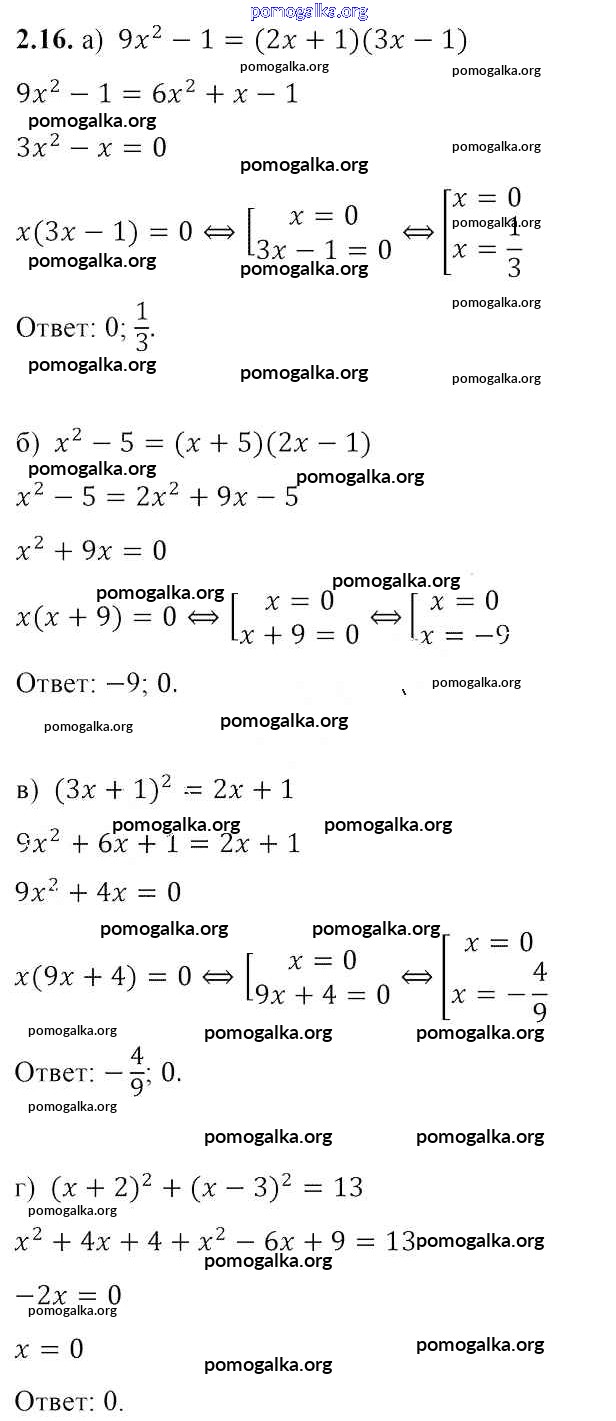 Готовые ответы - Алгебра 8 класс Арефьева И.Г. - упражнение глава 2 2.16