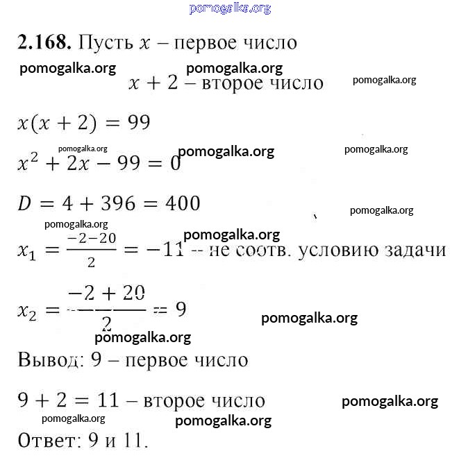 Готовые ответы - Алгебра 8 класс Арефьева И.Г. - упражнение глава 2 2.168