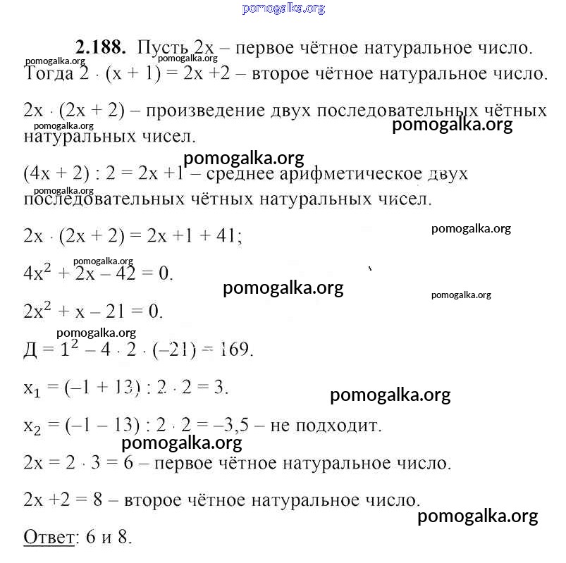 Готовые ответы - Алгебра 8 класс Арефьева И.Г. - упражнение глава 2 2.188