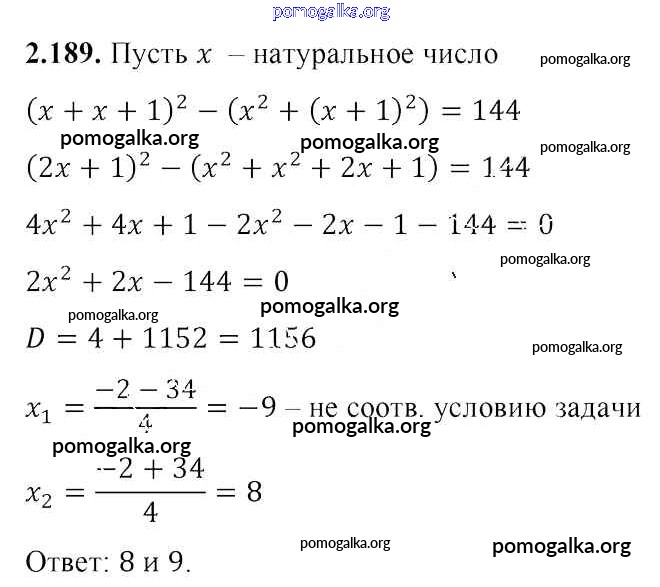 Готовые ответы - Алгебра 8 класс Арефьева И.Г. - упражнение глава 2 2.189