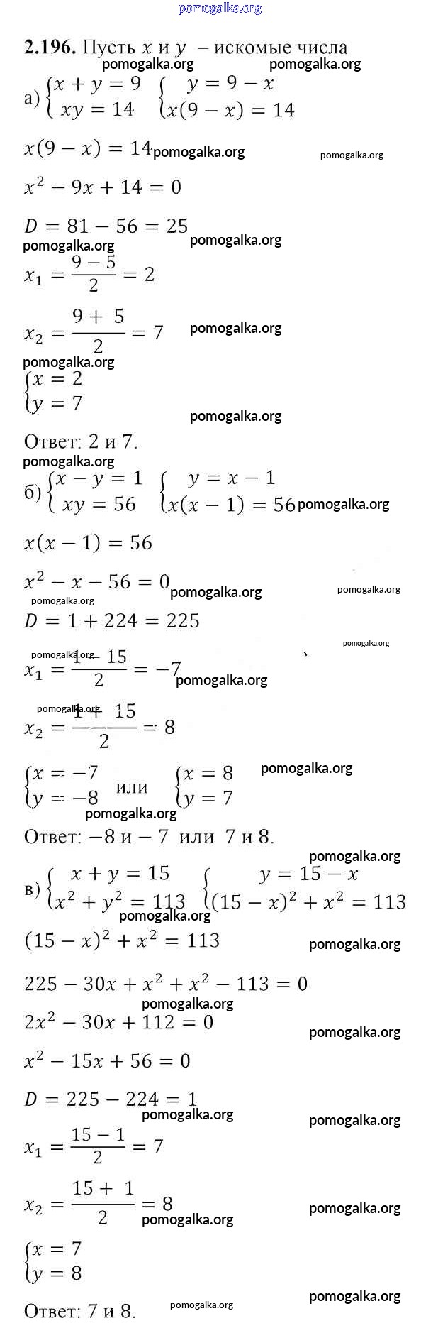 Готовые ответы - Алгебра 8 класс Арефьева И.Г. - упражнение глава 2 2.196