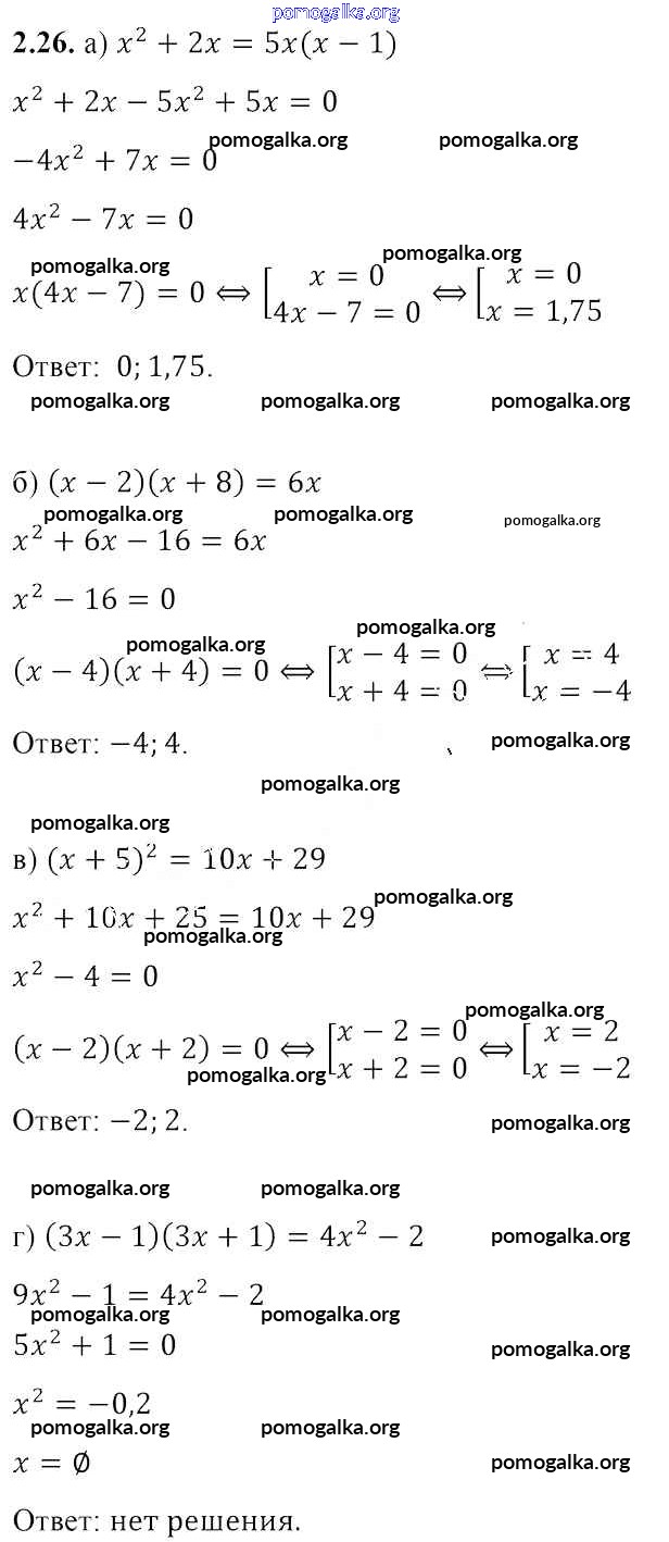 Готовые ответы - Алгебра 8 класс Арефьева И.Г. - упражнение глава 2 2.26