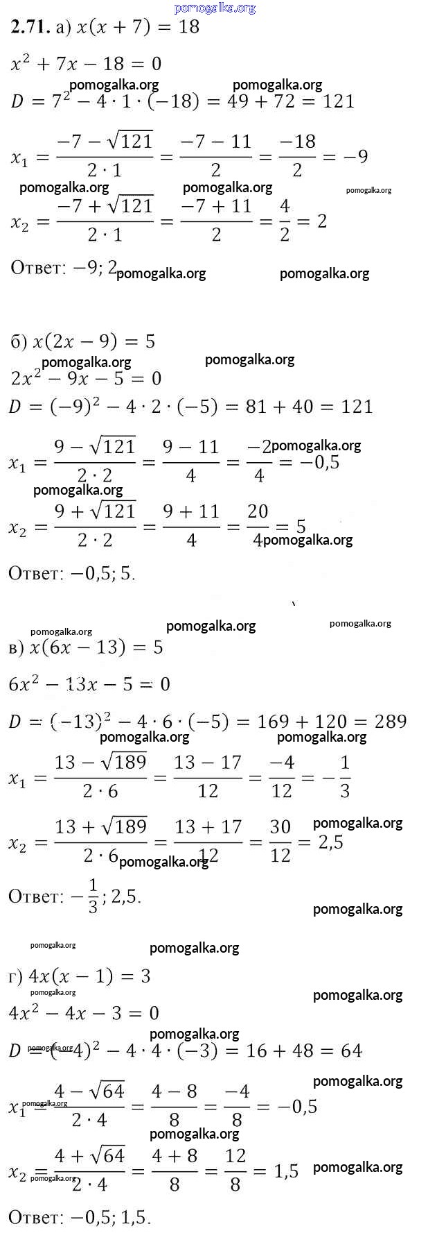 Готовые ответы - Алгебра 8 класс Арефьева И.Г. - упражнение глава 2 2.71