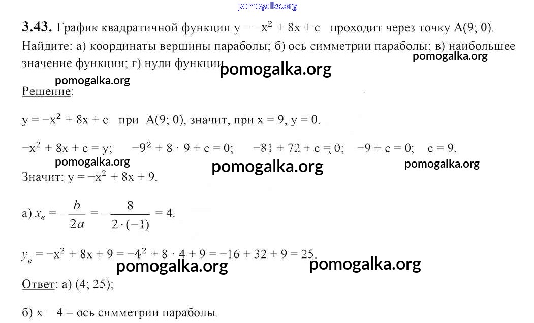 Готовые ответы - Алгебра 8 класс Арефьева И.Г. - упражнение глава 3 3.43