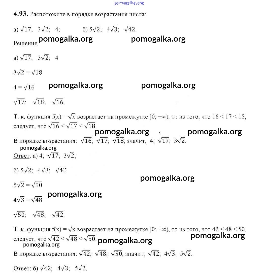 Готовые ответы - Алгебра 8 класс Арефьева И.Г. - упражнение глава 4 4.93