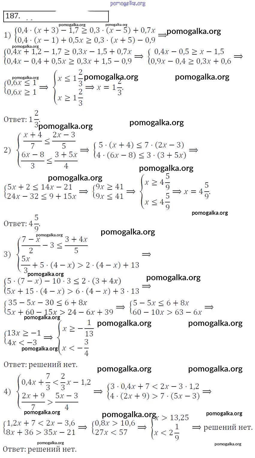 Готовые ответы - Алгебра 8 класс Колягин Ю.М. - упражнение 187