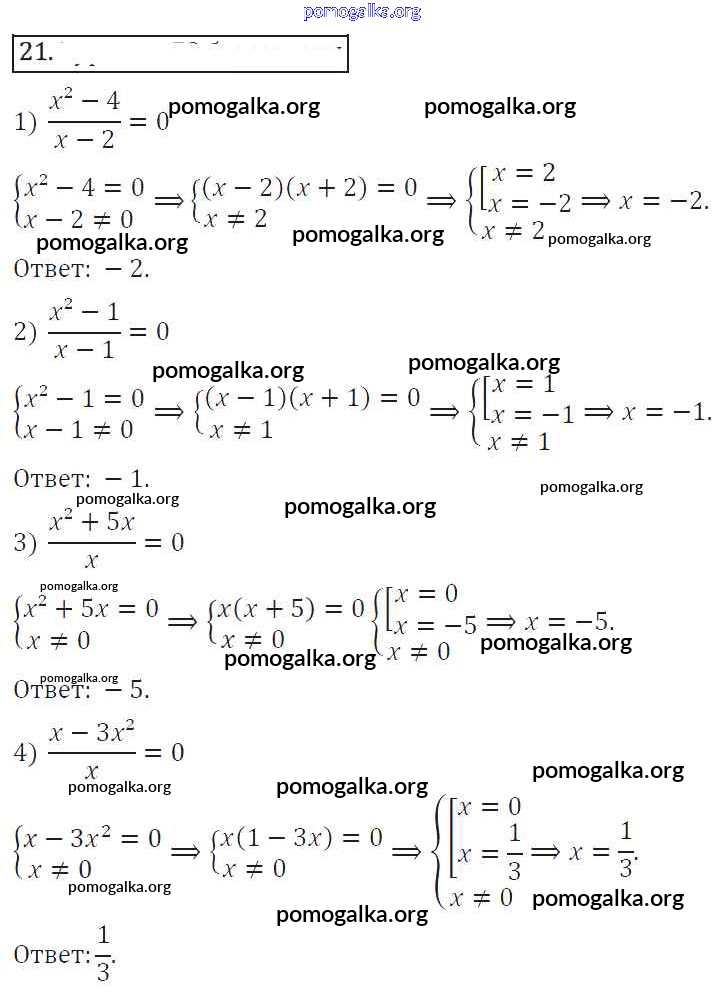 Готовые ответы - Алгебра 8 класс Колягин Ю.М. - упражнение 21