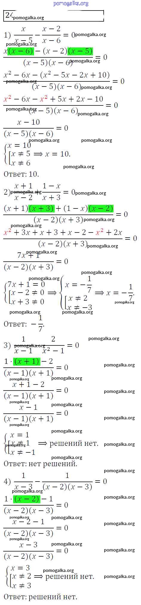 Готовые ответы - Алгебра 8 класс Колягин Ю.М. - упражнение 24