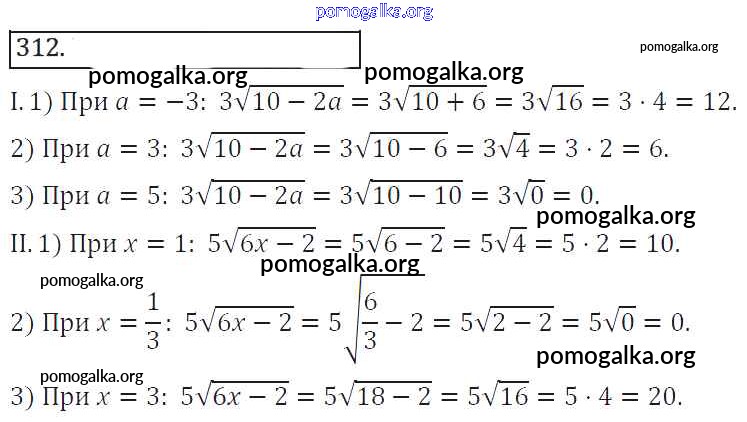 Готовые ответы - Алгебра 8 класс Колягин Ю.М. - упражнение 312