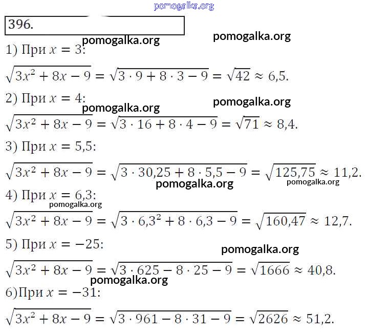 Готовые ответы - Алгебра 8 класс Колягин Ю.М. - упражнение 396