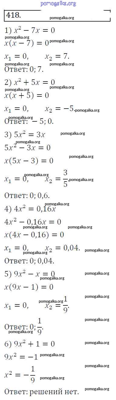 Готовые ответы - Алгебра 8 класс Колягин Ю.М. - упражнение 418