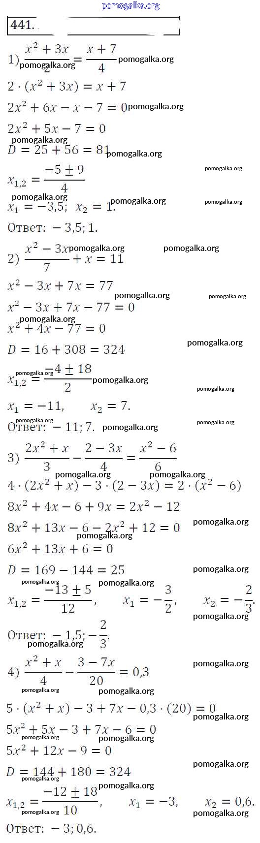 Готовые ответы - Алгебра 8 класс Колягин Ю.М. - упражнение 441
