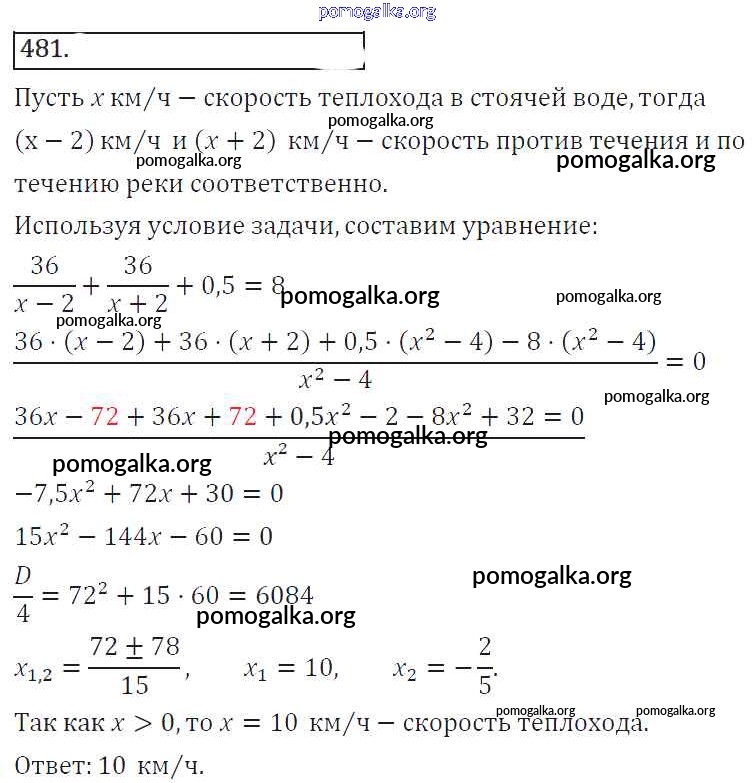 Готовые ответы - Алгебра 8 класс Колягин Ю.М. - упражнение 481