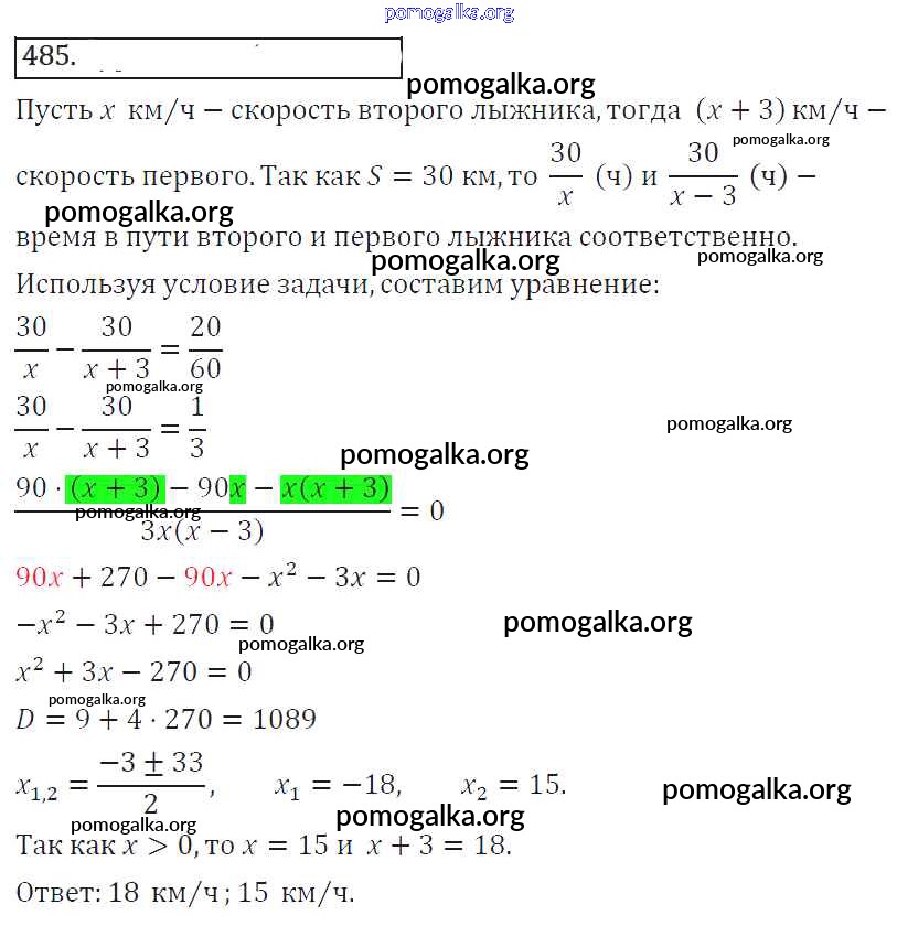 Готовые ответы - Алгебра 8 класс Колягин Ю.М. - упражнение 485