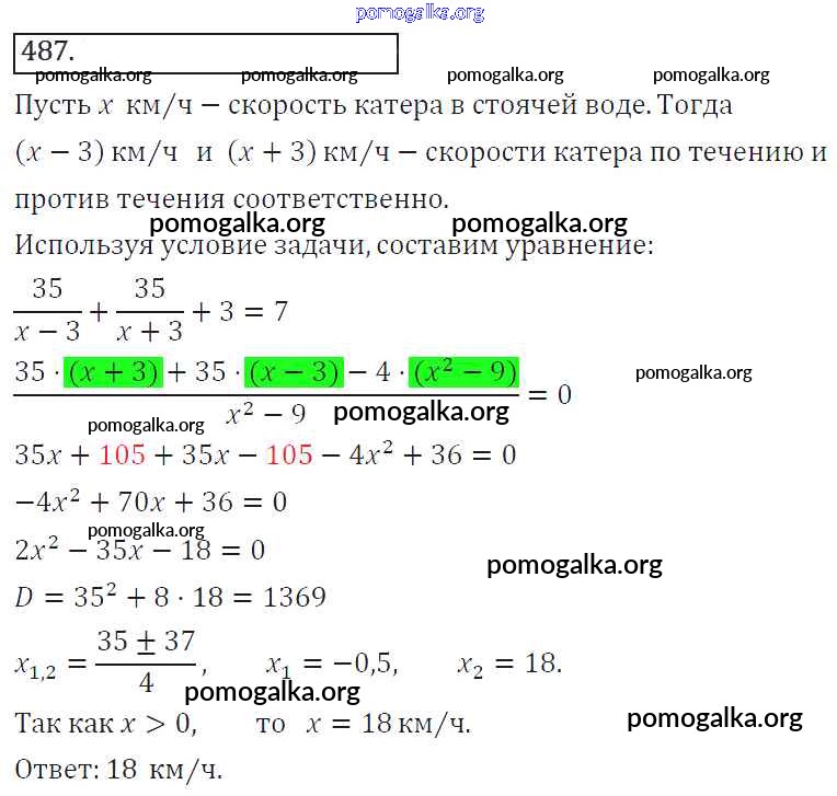 Готовые ответы - Алгебра 8 класс Колягин Ю.М. - упражнение 487