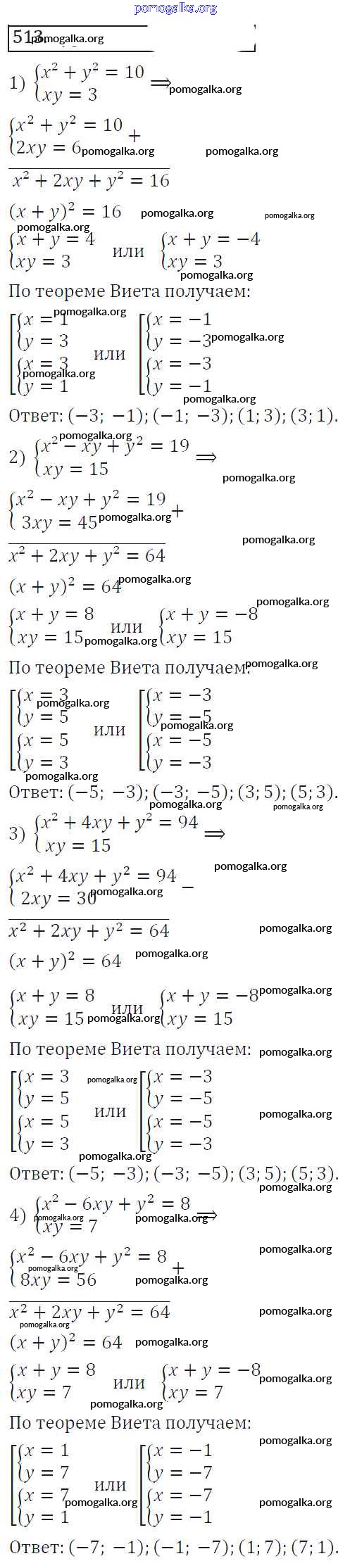 Готовые ответы - Алгебра 8 класс Колягин Ю.М. - упражнение 513