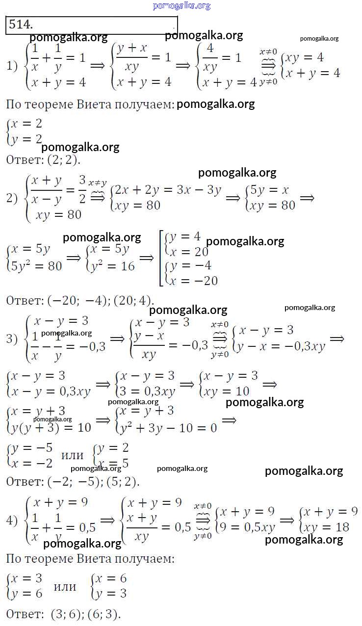 Готовые ответы - Алгебра 8 класс Колягин Ю.М. - упражнение 514