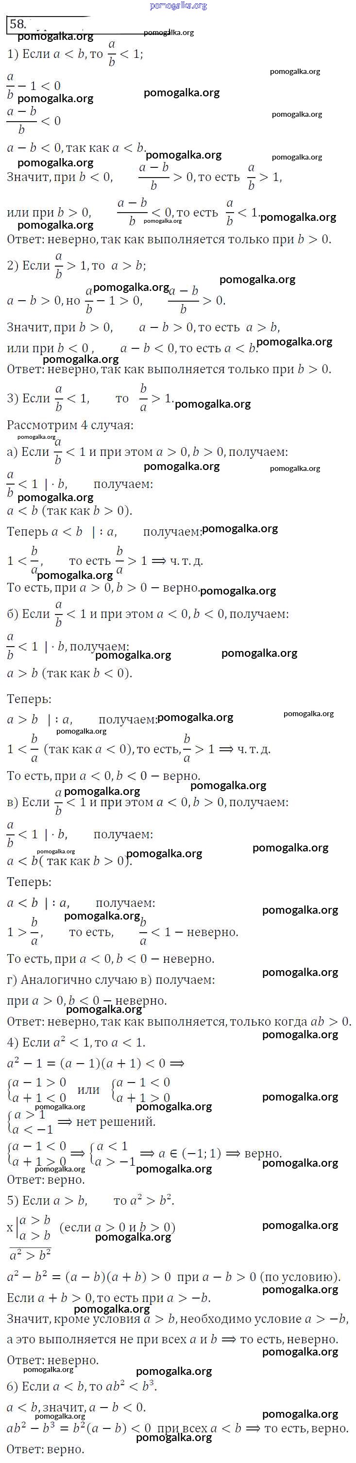 Готовые ответы - Алгебра 8 класс Колягин Ю.М. - упражнение 58