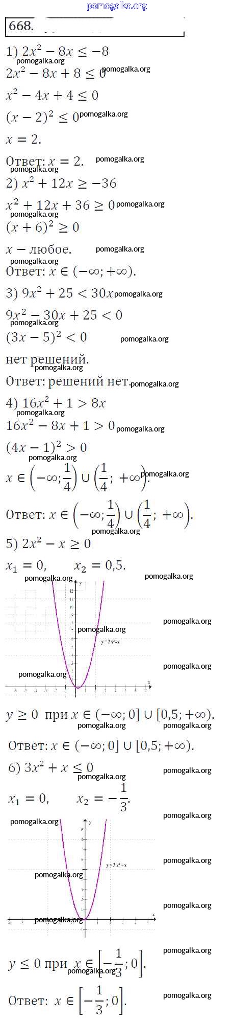 Готовые ответы - Алгебра 8 класс Колягин Ю.М. - упражнение 668