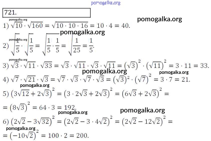 Готовые ответы - Алгебра 8 класс Колягин Ю.М. - упражнение 721