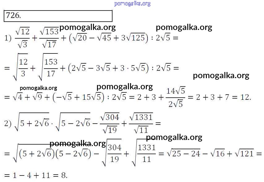 Готовые ответы - Алгебра 8 класс Колягин Ю.М. - упражнение 726