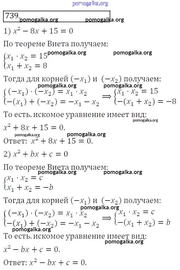 Готовые ответы - Алгебра 8 класс Колягин Ю.М. - упражнение 739