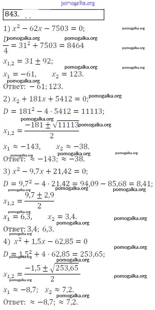 Готовые ответы - Алгебра 8 класс Колягин Ю.М. - упражнение 843