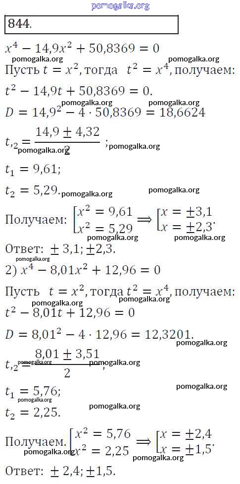 Готовые ответы - Алгебра 8 класс Колягин Ю.М. - упражнение 844