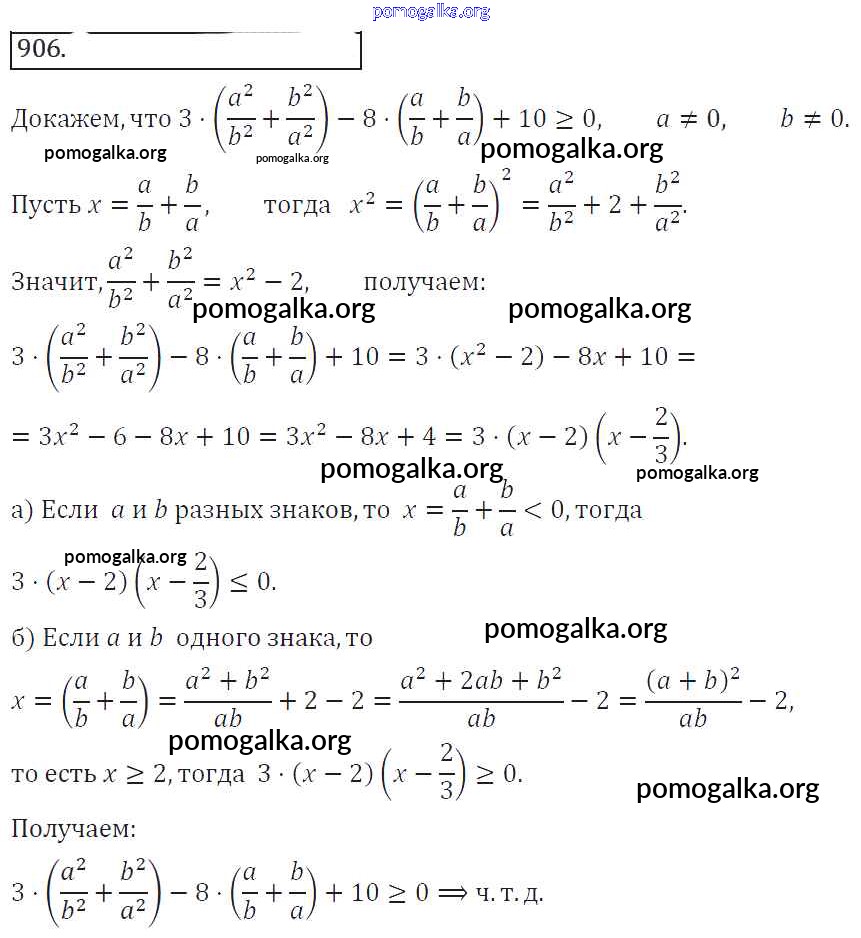 Готовые ответы - Алгебра 8 класс Колягин Ю.М. - упражнение 906