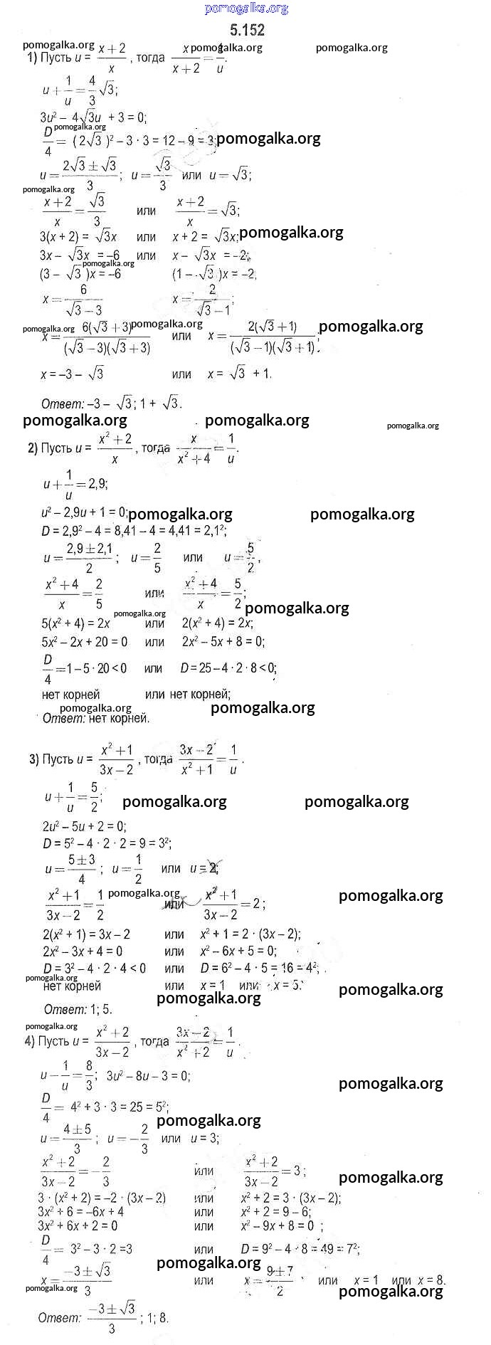 Готовые ответы - Алгебра 8 класс Кузнецова Е.П. - глава 5 5.152