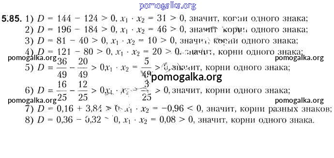 Готовые ответы - Алгебра 8 класс Кузнецова Е.П. - глава 5 5.85