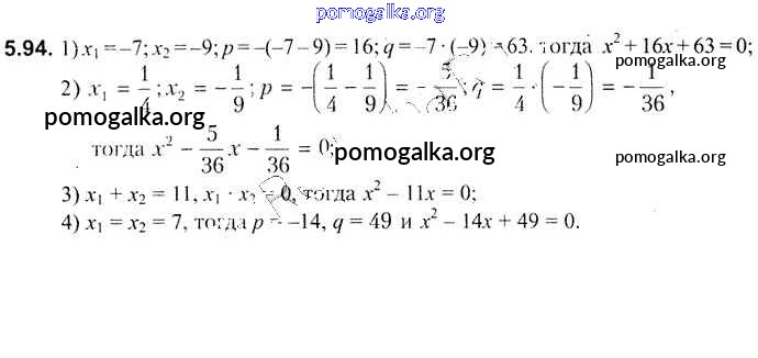 Готовые ответы - Алгебра 8 класс Кузнецова Е.П. - глава 5 5.94