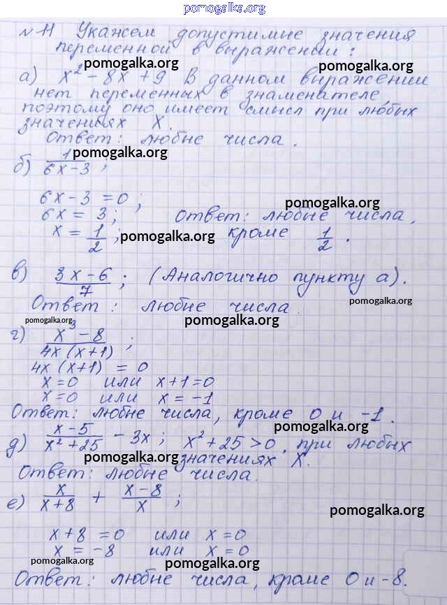 Готовые ответы - Алгебра 8 класс Макарычев Ю.Н. - упражнение 11