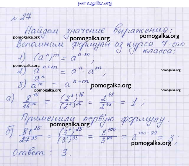 Готовые ответы - Алгебра 8 класс Макарычев Ю.Н. - упражнение 27