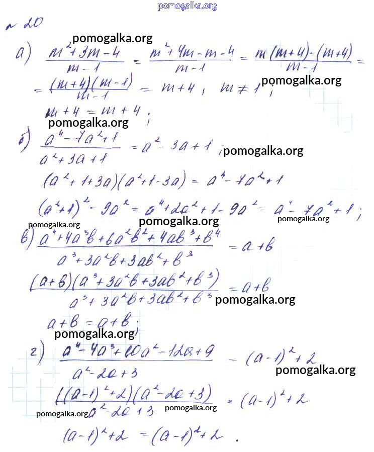 Готовые ответы - Алгебра 8 класс Макарычев Ю.Н. - упражнение 20