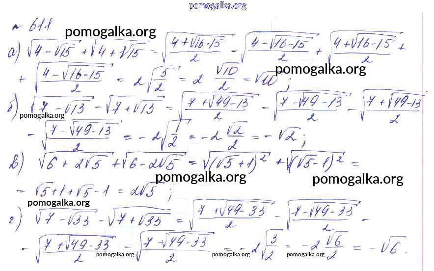 Готовые ответы - Алгебра 8 класс Макарычев Ю.Н. - упражнение 611