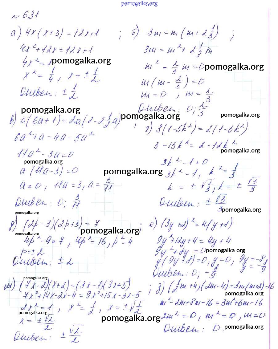 Готовые ответы - Алгебра 8 класс Макарычев Ю.Н. - упражнение 631