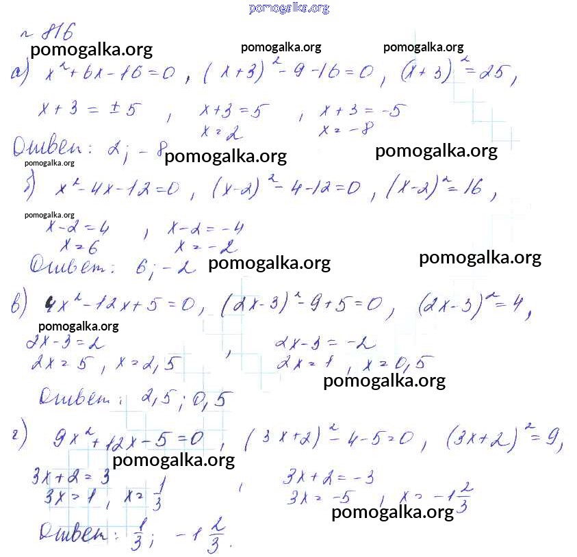 Готовые ответы - Алгебра 8 класс Макарычев Ю.Н. - упражнение 816