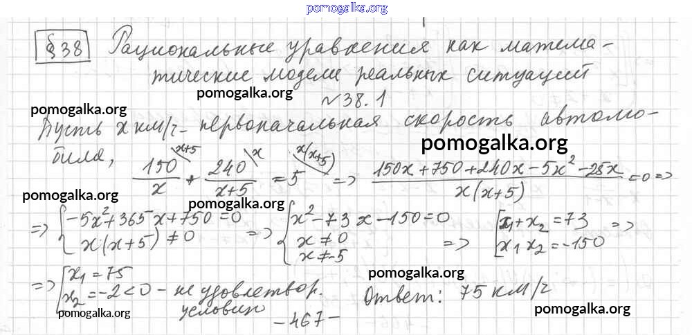 §38. Рациональные уравнения как математические модели реальных ситуаций