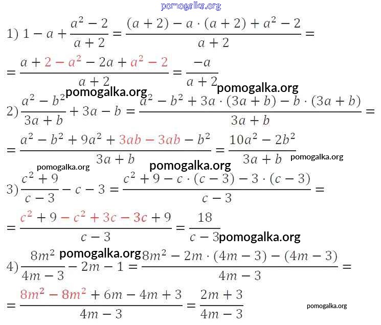 §3. Сложение и вычитание рациональных дробей с одинаковыми знаменателями №68-97