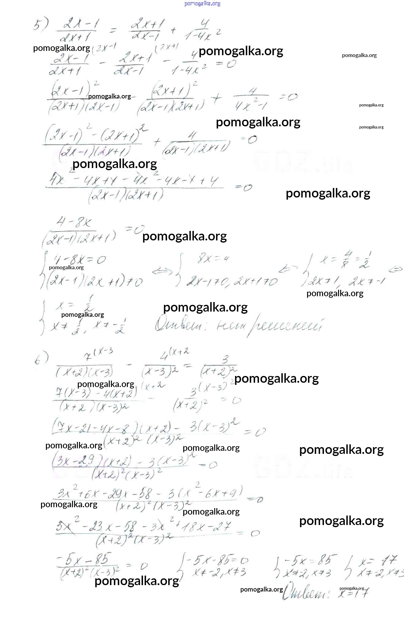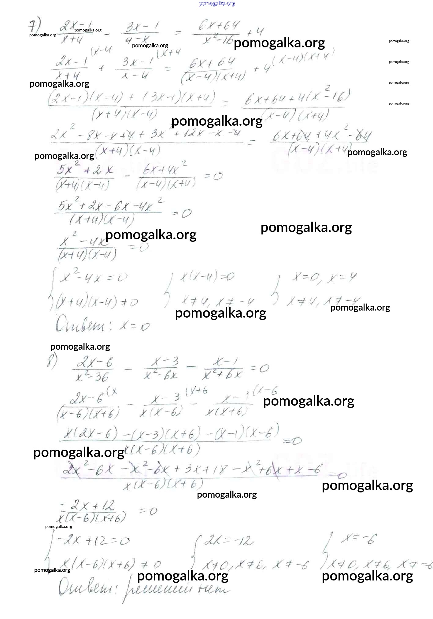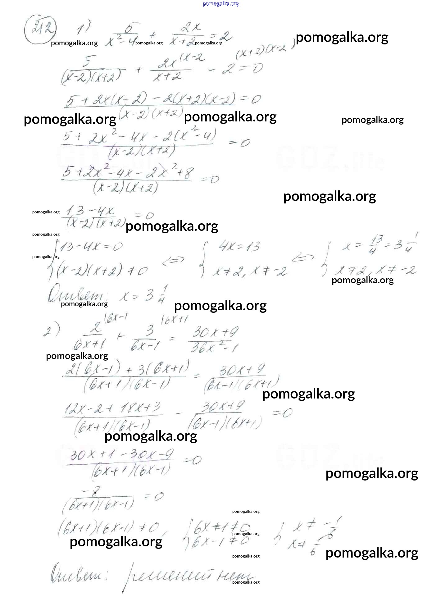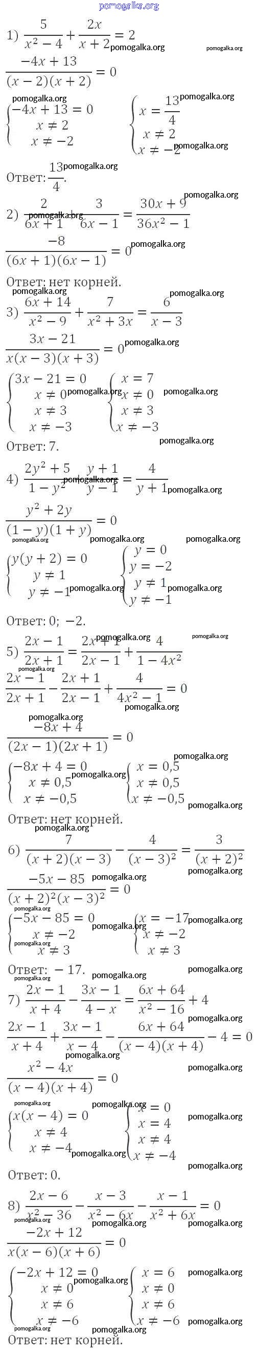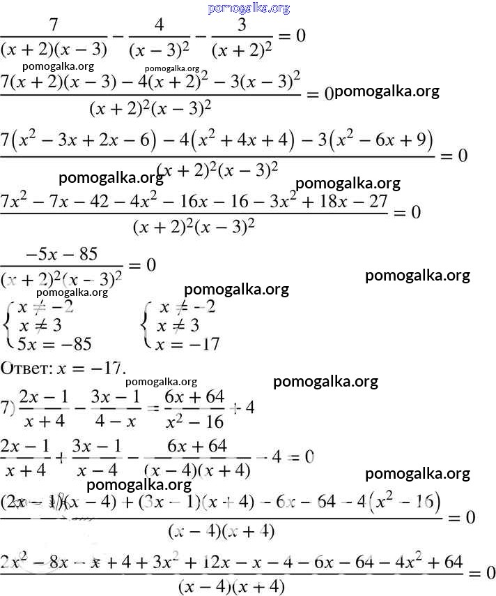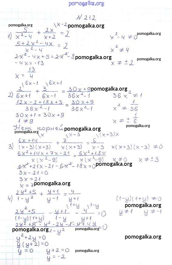 §7. Равносильные уравнения. Рациональные уравнения №205-230