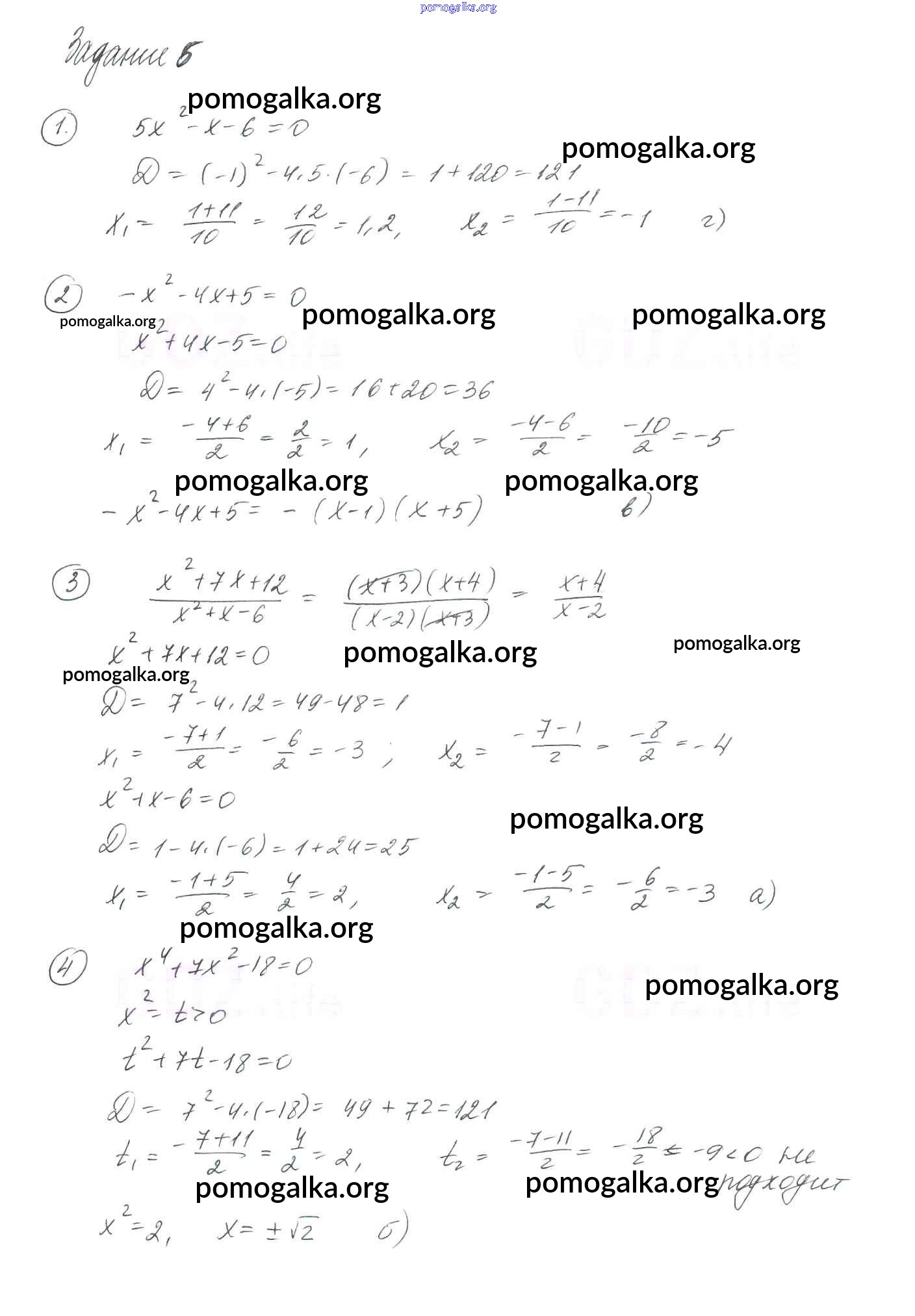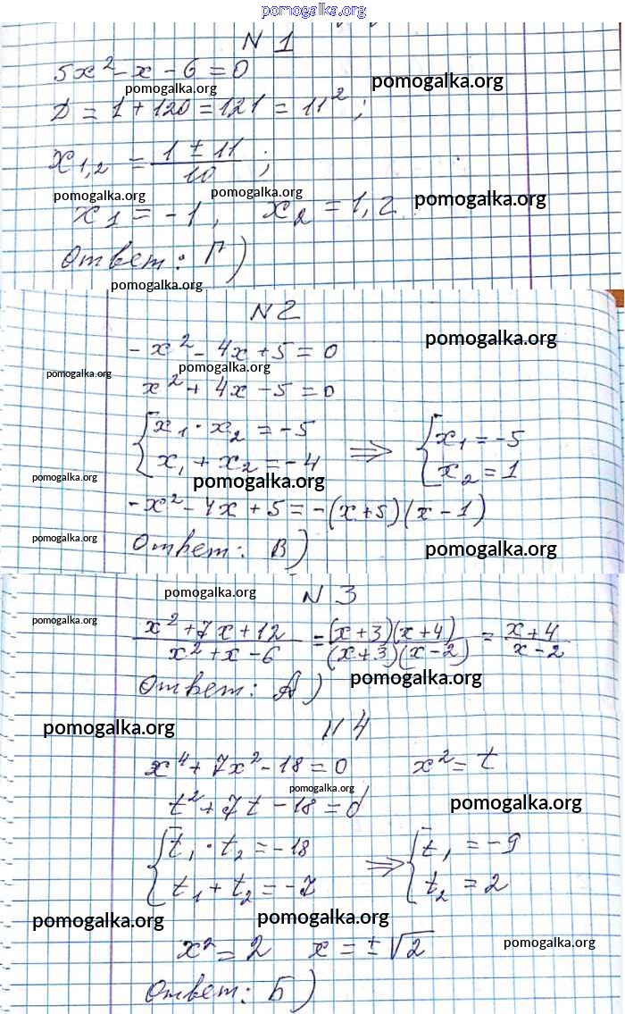 §20. Формула корней квадратного уравнения №656-704