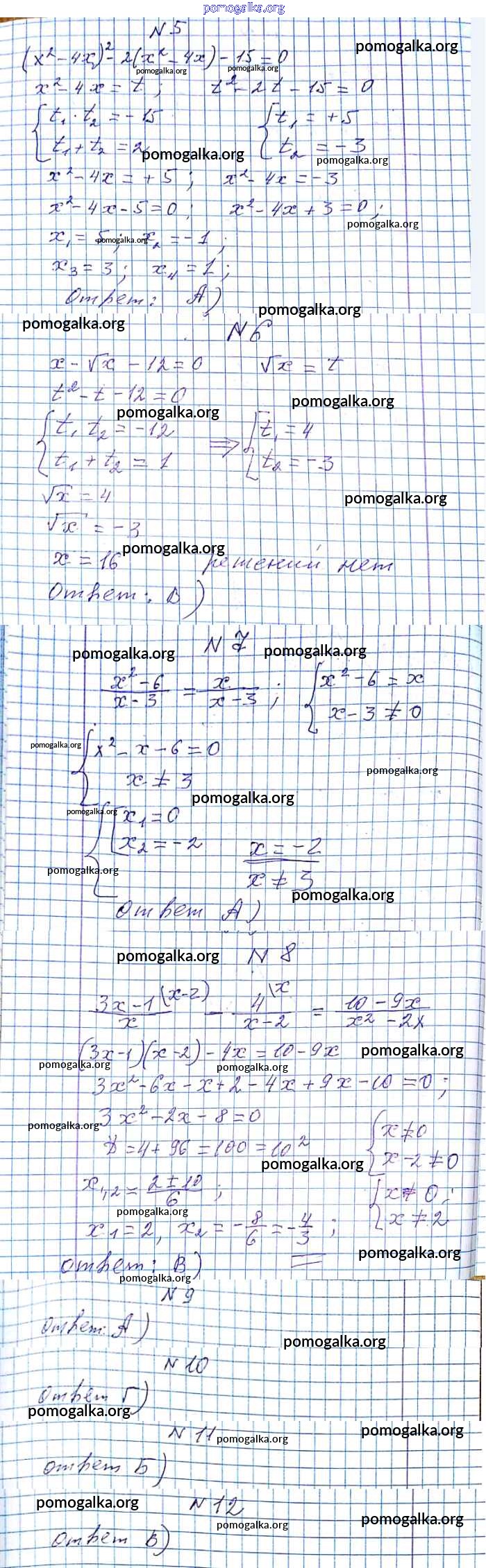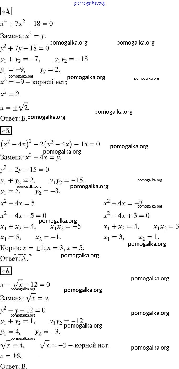 §23. Решение уравнений, сводящихся к квадратным уравнениям №775-801