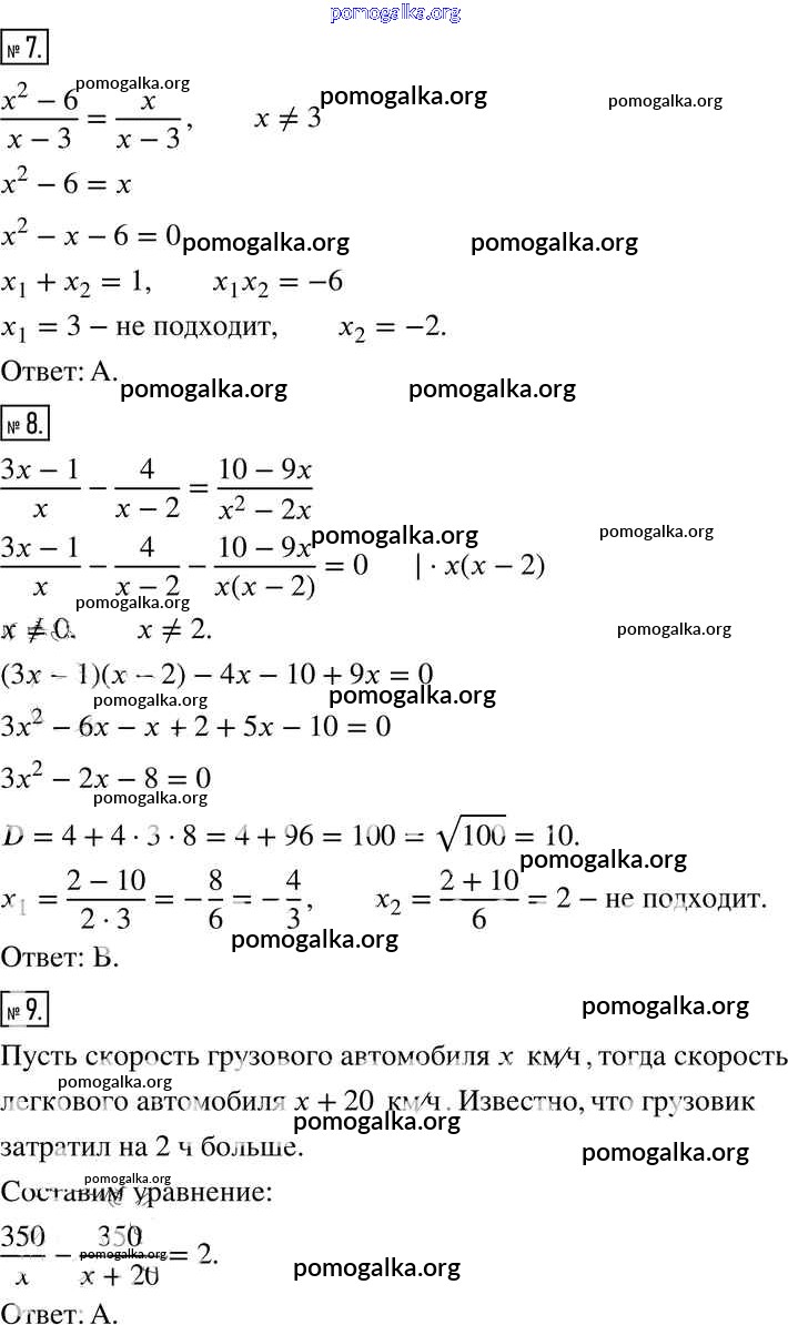 §7. Равносильные уравнения. Рациональные уравнения №205-230