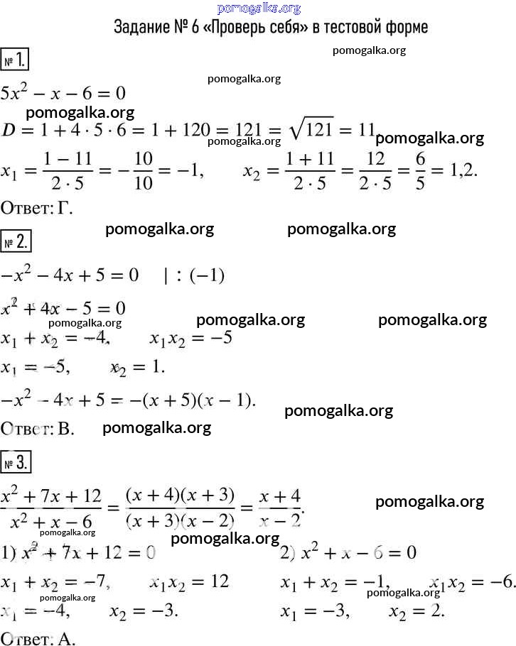 Готовые ответы - Алгебра 8 класс Мерзляк А.Г. - проверь себя №6 глава 3 1