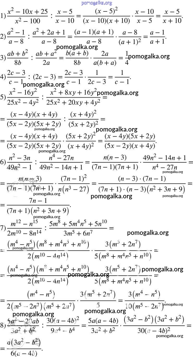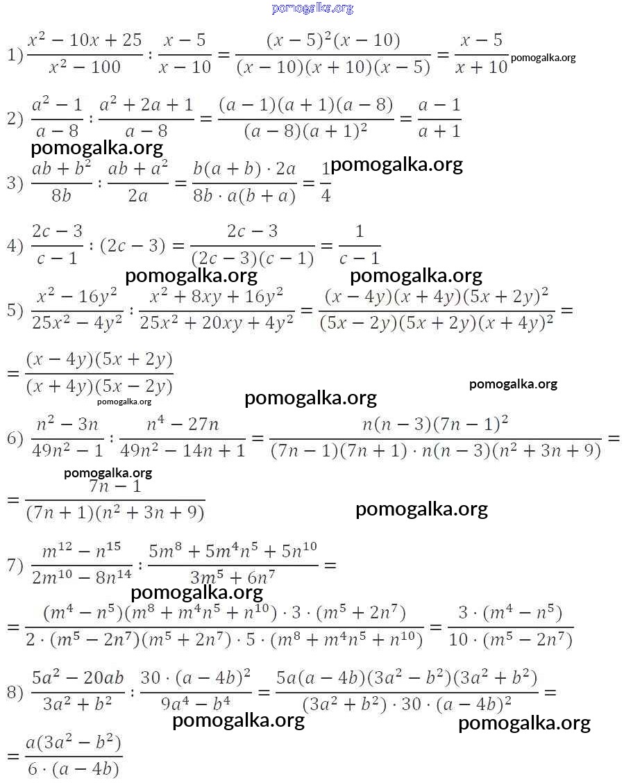 §5. Умножение и деление рациональных дробей. Возведение рациональной дроби в степень №143-175