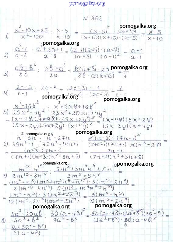 Готовые ответы - Алгебра 8 класс Мерзляк А.Г. - упражнение для повторения 862